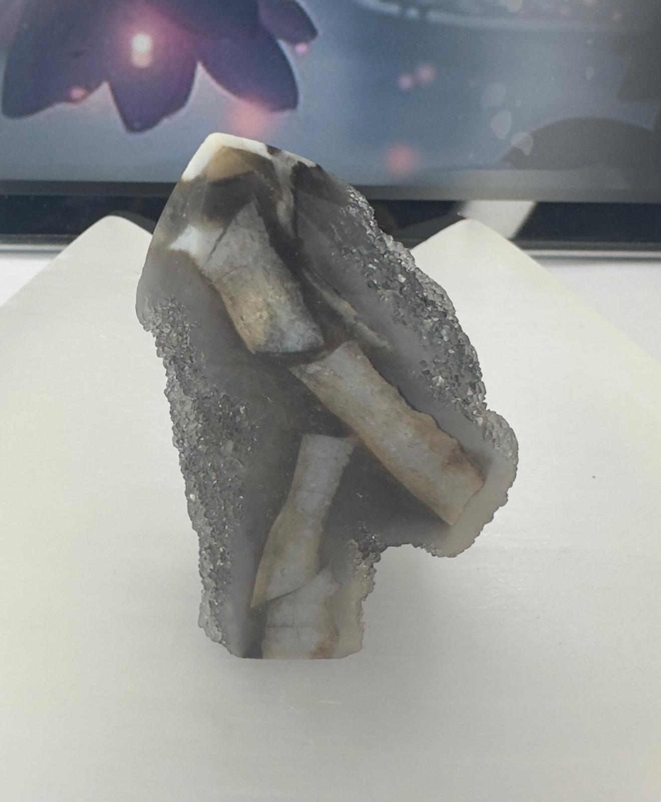 Druzy Agate is often appreciated for its calming, stabilising energy and for the gentle uplift that the tiny sparkling crystals bring. This piece works beautifully as a display crystal for shelves, altars and desks and it also feels grounding when held. Its unique shape and natural patterns make it a distinctive addition to any crystal collection.
